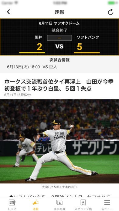 ソフトバンクホークスの活躍をiPhoneでチェックできる!