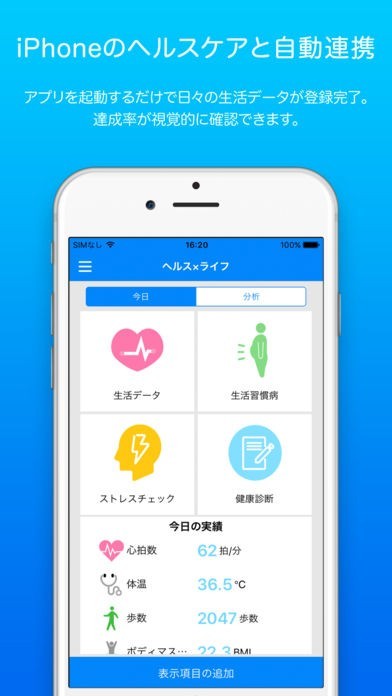 「ヘルス×ライフ」は、心身の健康情報管理から生活習慣病リスク分析まで行える、健康管理アプリです。