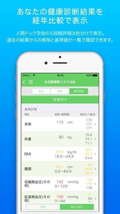 ・健康診断結果、生活習慣病リスクを確認できます。