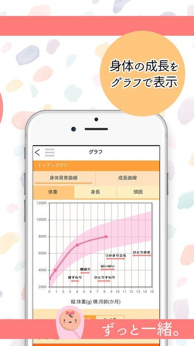 お子さんの身長や体重など成長の記録もグラフで確認できます。