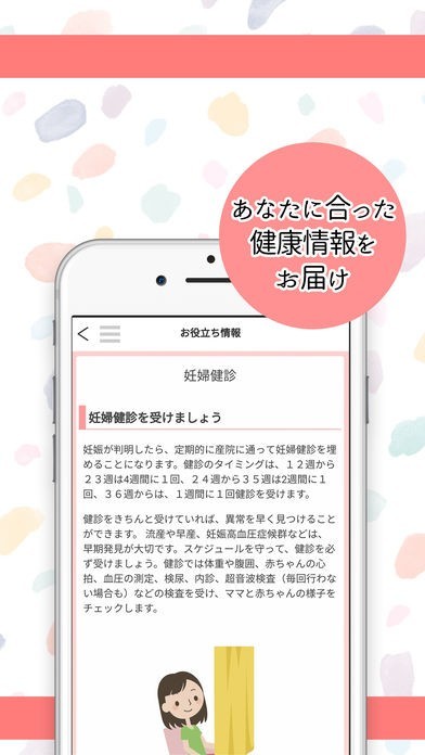 入力した情報や妊娠週数、お子様の年齢をもとに健康メッセージを表示します。