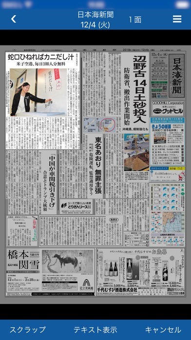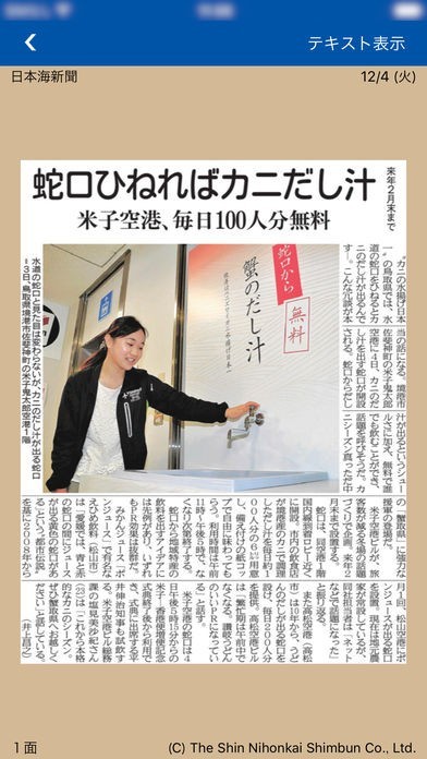 ・新聞の縦書き文字を、端末で読みやすい横書きに表示するテキスト表示機能を搭載。