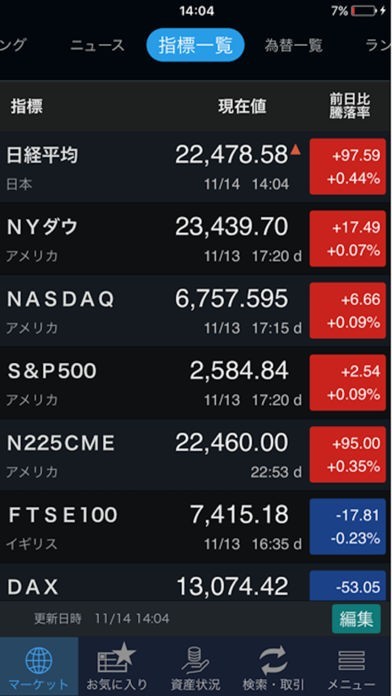 アプリでチェックできるのは株式だけではありません。為替レート全12通貨ペアも確認することができます。為替レートは株式と連動するため、各通貨ペアの値動きもチェックしておきましょう。