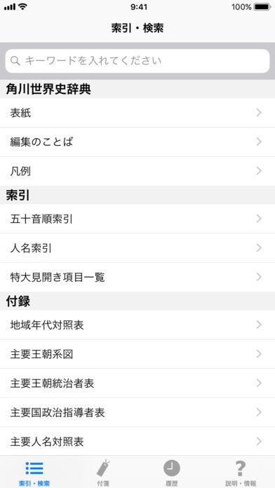 このアプリでは、自分が調べた単語が角川の日本史辞典ではどのように記述されているのか検索することができるので、世界史の事象が日本の視点からどのように見えていたのかが分かります。