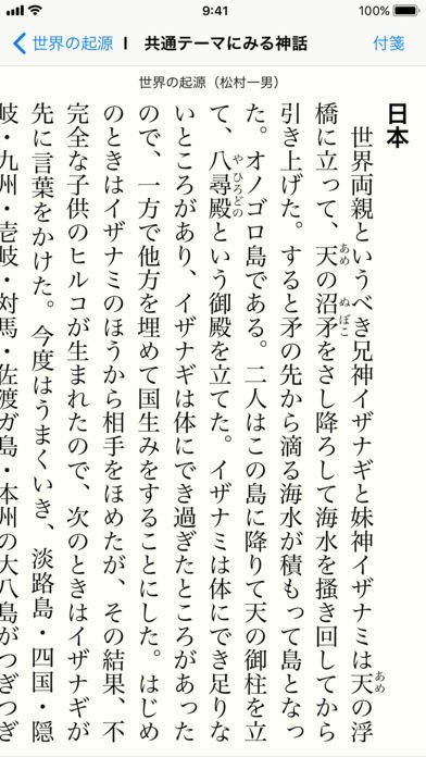 神話には人間の起源に迫るようや共通する話がいくつか見られます。それらをこのアプリで横断的に読むことで比較研究しやすく、あなたの民俗的な知識や文化的な知識に新たな見識をもたらしてくれるかもしれません。