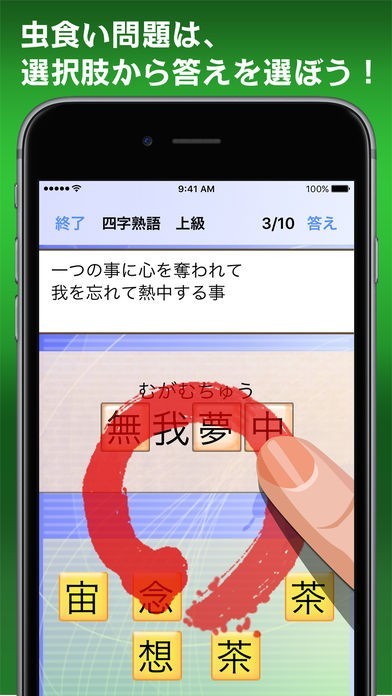 スマートフォンの画面を指でなぞることによって回答することができます。わざわざノートや鉛筆などを用意しなくても良いため、いつでも勉強ができ、とても使い勝手が良いです。