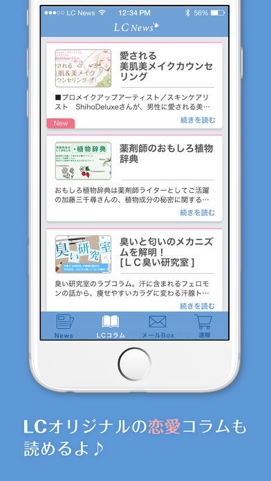 コスメに関する情報が配信されていて、恋愛等のコラムが閲覧出来るのも面白い