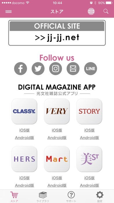 「JJ – Digital Store App –」は、おおよそ25歳前後の女性に人気の情報誌「JJ」がスマホで手軽に閲覧出来る、便利な情報誌アプリです!スマホさえあれば、場所を選ばずに最新のトレンド情報をゲット可能です!