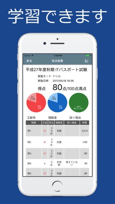 問題ごとの理解度を表示可能!納得しながら学習を進めよう!