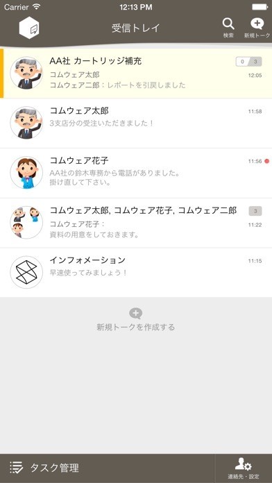 App Storeより引用「シャナインTALK」は、企業における“報告・連絡・相談”をスマートフォンやタブレットで実現する、企業向けのメッセンジャーサービスです。企業の管理者が登録したユーザーのみが利用でき、セキュアにメッセージやテンプレート形式のタスクのやり取りを行えます。