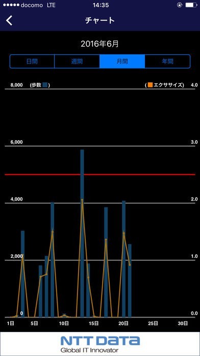 ・歩数、消費カロリー等のチャート(グラフ)表示