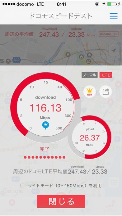使用している端末の通信速度を計測することが出来るアプリ。ドコモ以外の端末でも使用できる