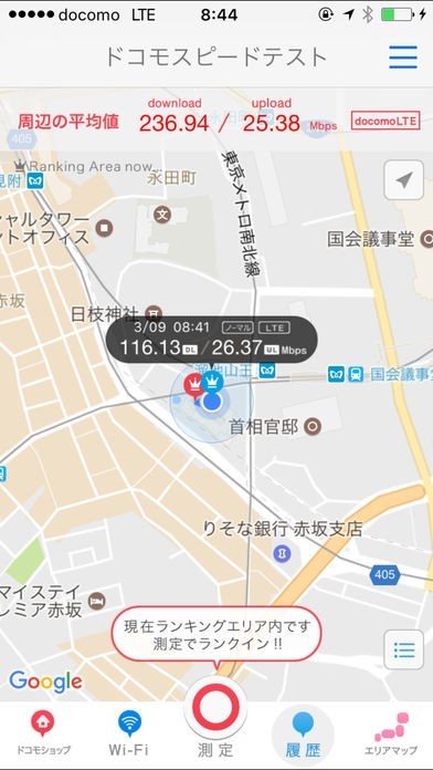 スマホの通信速度がどれ位なのか知りたいというユーザーに便利なのがこのアプリです。 ダウンロードは勿論の事、アップロードのスピードも表示されます。 ランキングにて通信速度の早いエリアが何処なのか分かるのも良い点です。 駅やカフェ、ファミレス、コンビニなど様々な場所で繋がるdocomoWi-Fiスポットを調べる事も可能です。 公衆Wi-Fiサービスならネットに接続してもデータ通信量が消費されないため、使いたい放題できます。 ドコモショップの検索機能も付いており、何処にあるか調べたい時にも便利です。 測定結果のエクスポートが可能、アプリを削除しても今までのデータが失われません。 ドコモのスマホ以外でも使用できます。