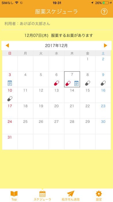 (2)服薬チェック:登録された情報に応じた服薬状況の管理が可能