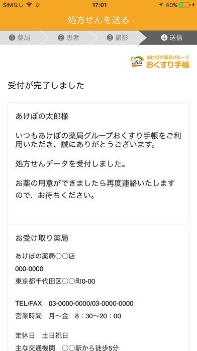 また、処方箋の画像データをあけぼの薬局グループの店舗に送信することで、事前にお薬の準備を依頼することができます。便利な機能満載の「あけぼの薬局グループ おくすり手帳(処方せん予約)」をぜひご利用ください。