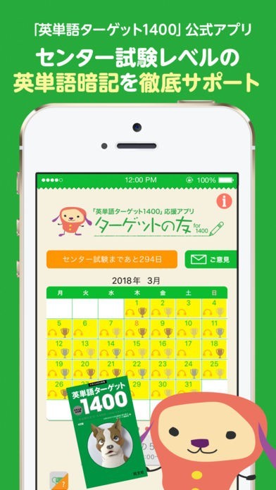 大学受験、センター試験に必要な英単語1400語を効率よく学習できるアプリです。今日の5問など、ちょっとしたクイズ形式の学習も掲載されており、英単語学習が習慣化され身につきます。