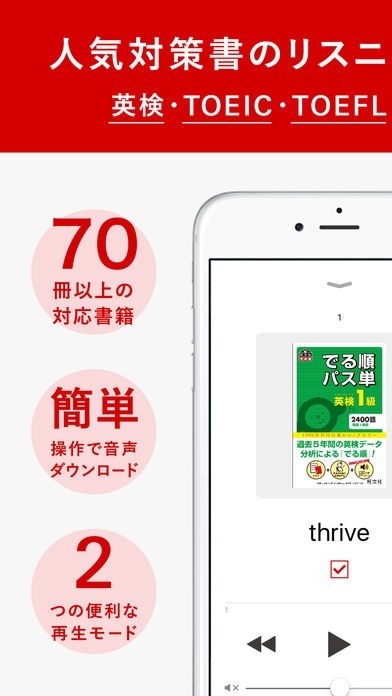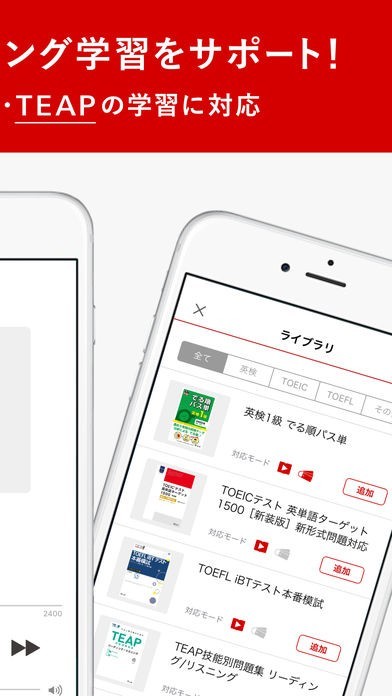TOEICなどの英文聞き取りが必須の試験に備えた対策ができ、耳と目でしっかり覚えられます。