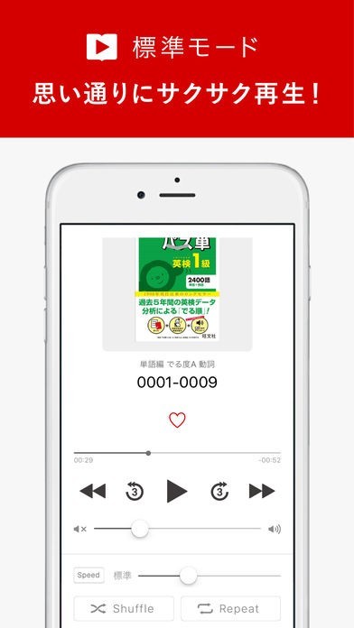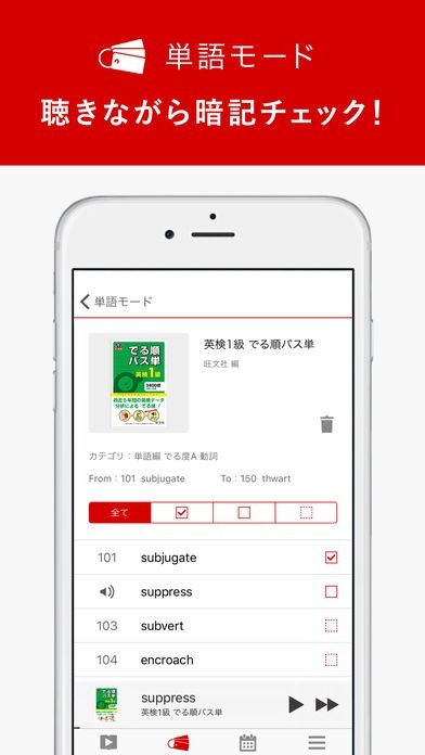 旺文社の刊行している資格試験対策書に付属している音声ファイルをスマートフォンで利用することができるアプリとなっていて、スローや高速再生をすることも可能となっています。