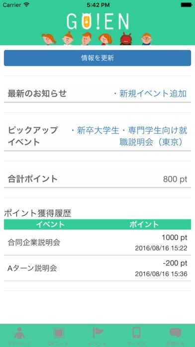 App Storeより引用秋田の就職関連イベント情報が確実・お手軽に手に入り、イベント参加で「ポイント」もGET!獲得したポイントで、自動車購入から温泉宿泊など日常生活にいたるまで、各種割引など優待サービスが受けられます。