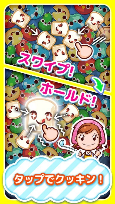 キャラ化した食材を繋げて料理を完成させると得点になるわけですが、この食材同士をくっつけるのが気持ちよくてハマってしまいます。スワイプとホールドの操作感が絶妙です。