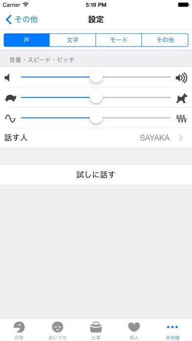 登録した言葉を実際に会話で利用しやすいように、発話のスピードを調整することも可能です。「試しに話す」機能を使えば、設定した内容が問題ないか自分で聞いて確かめられます。