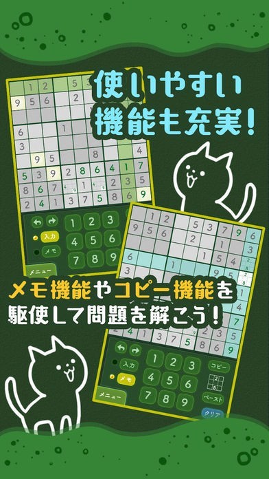操作しやすいナンプレ!は緑色が目に優しくて、いつでもできるナンプレが全800問!