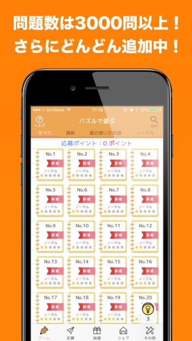 ナンプレde懸賞 - 脳トレ&懸賞!数独パズル3000問以上のスクリーンショット