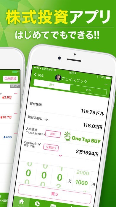 「One Tap BUY(ワンタップバイ)1,000円から株が買えるスマホ証券」のアプリとは、株に関する情報やあまり知られて情報なども掲載されているアプリとなっています。とてもシンプル且つ分かりやすく説明されているので、株を知らない人でも安心して利用することができます。1,000円から買える株の情報が多く掲載されているので、初心者の方でも安心して利用することができます。他のインターネットサイトやアプリよりも初心者の方向けの情報が多いです。
