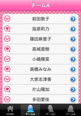 チームごとに分類されているのでお気に入りメンバーのブログがすぐに見つかる