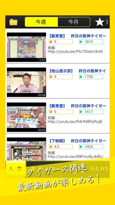■人気動画 今週 / 今月の新着タイガース関連の動画が楽しめる!