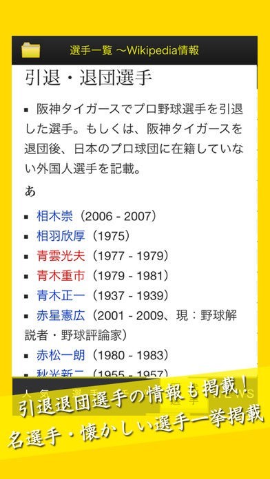 ■引退選手情報 引退選手別の情報/データ(Wikipedia)が楽しめる!