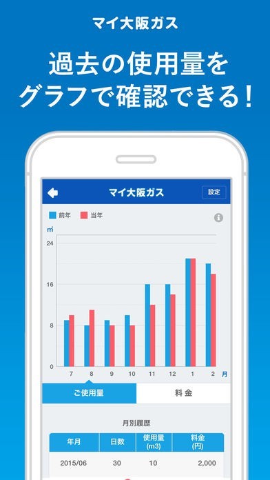 - 過去2年間のご使用量と料金をグラフ・表で確認できます。