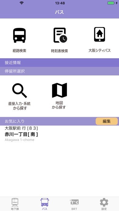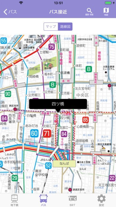 大阪メトログループの地下鉄、バスの詳細情報が確認できる
