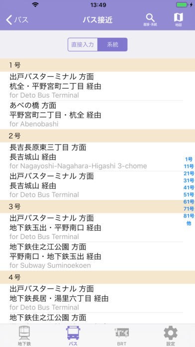 地下鉄画面からは運行情報や時刻表、路線図などが確認できるほか、地下鉄の遅れが原因で遅刻しそうな場合には延着証明書の発行が出来ます。バスの画面からは経路や時刻表が検索できるほか、GPS機能を使って乗車予定のバスがどこを走っているかを確認できます。
