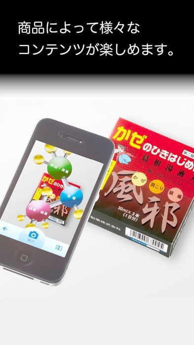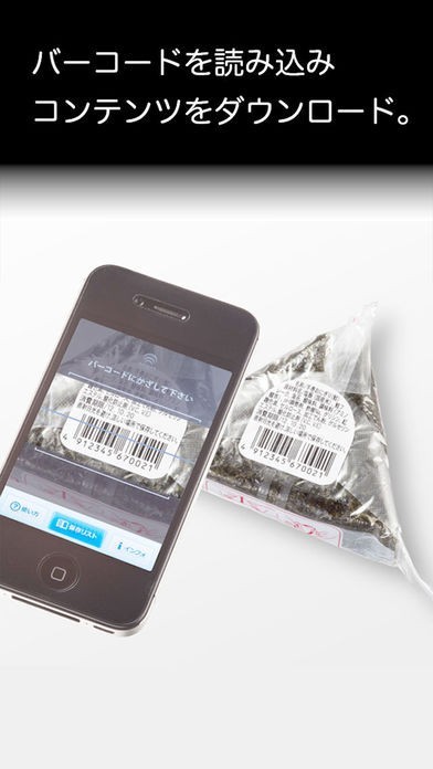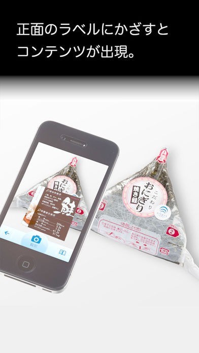 ③バーコードを認識するとデジタル情報がダウンロードされ、「商品読み取り画面」となります。ラベル又は、パッケージにかざすとデジタル情報をお楽しみ頂けます。