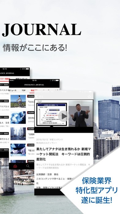 「保険ビジネスを支援する-INSURANCE JOURNAL」は保険業界に関するニュースや情報が得られるアプリです。保険業界で働く人々にとって有益な情報が盛りだくさんです。内容はニュースやコラム、商品、スキルアップに関するコンテンツまで様々なものがあります。保険業界で働く人はもちろん、保険業界を詳しく知りたい人も必見です。このアプリを使えば、保険業界についてより詳しく知ることができるほか、営業など自身が現場で使える情報を知ることができます。