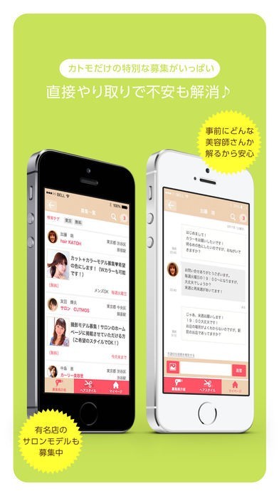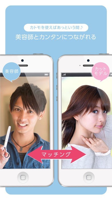 カットモデルを探している美容師とカットモデルになりたい人を結ぶマッチングアプリです。カットモデル希望者は希望地域や希望ヘアスタイルを含むプロフィールを入力し、美容師は条件に合う希望者を検索します。 美容師は街中などでカットモデルを探す必要がなくなり、カットモデル希望者は無料で髪をカットしてもらえるのでお互いにとってメリットがあります。どちらも無料で利用できます。美容師の作品を集めたヘアカタログが用意されているので、カットモデルになる参考にできます。