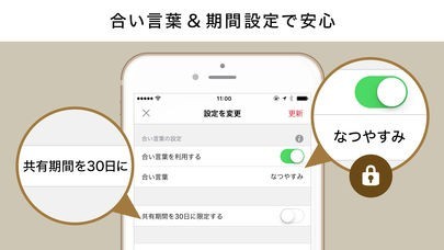 合言葉で写真を共有できる