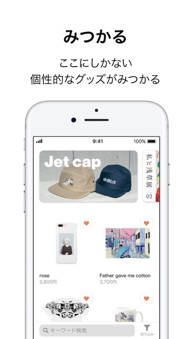 本アプリでは好きな画像をアップするだけで世界に一つしかないオリジナル商品を作成できます。作成した商品はアプリ上で販売もできるため、他の人に使ってもらう喜びも味わうことができます。
