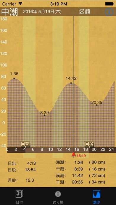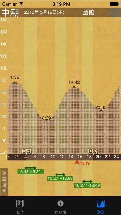 日没等の情報も丸わかり!海面の状態をグラフで調べられる!