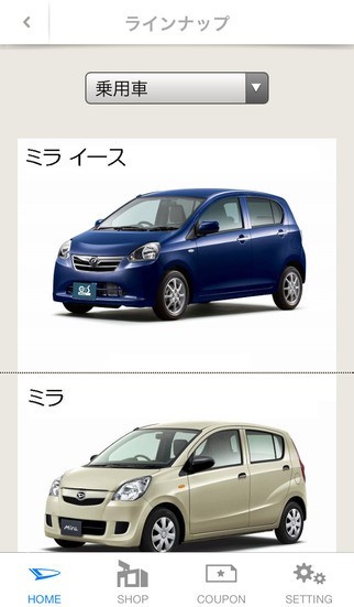 新車ラインナップの写真をタップすれば、サイトの詳しいカタログを見られる