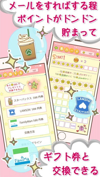 出会いも探せてポイントも貯めれます。メールを受信するだけでポイントが貯まり、貯まったポイントはギフトカードやコンビニのクーポンと交換する事が出来るので二度おいしいアプリです。