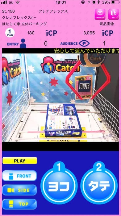 実際のクレーンゲームをアプリを使って遠隔で操作、手に入れたアイテムは配送されるようになっています。ヨコ操作とタテ操作の2ボタンで遊べる簡単UFOキャッチャーに挑戦しましょう。