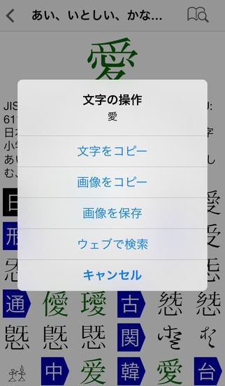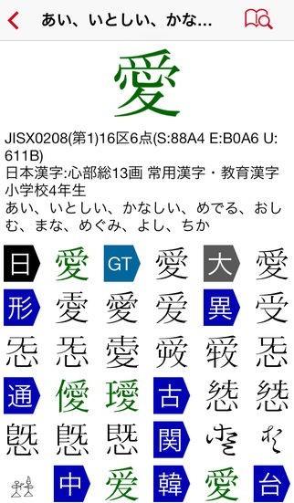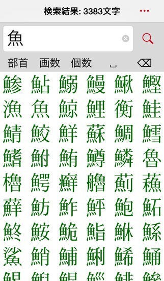 分からない漢字があっても、部首の名前が分からなければ調べようがない時がありますが、このアプリを使えば、直観的に(たとえば、「磊」という漢字を調べたい時は「石×3」と検索する)調べることができます。