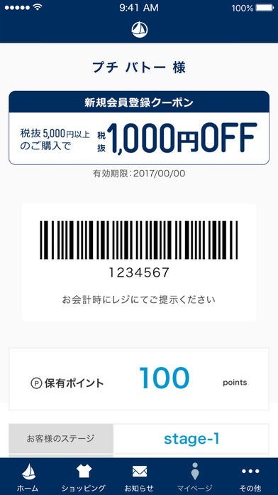PETIT BATEAU公式アプリ「私のプチバトー」のスクリーンショット