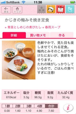 あなたもこのアプリを使えば、簡単に健康的な学食のメニューを家庭で作ることができます。学食で人気の定食30食に加え、人気の副菜とデザートを20種類収録していますので、メニューのアレンジは自由自在です。