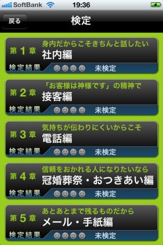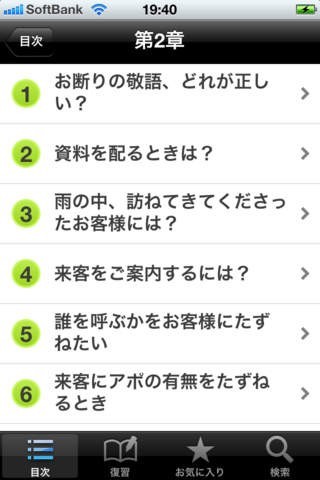 このアプリでは、社内・接客・電話・冠婚葬祭・おつきあい・メール・手紙でつかわれる実践的な敬語がクイズ形式で楽しく学べます。