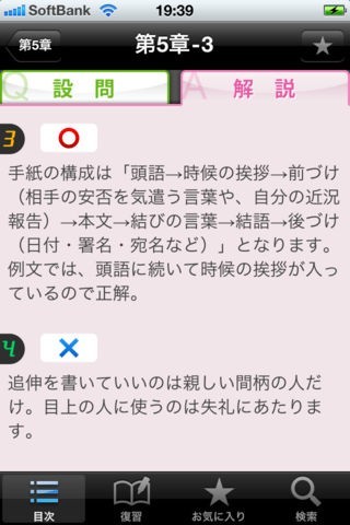 また、苦手な問題を集めて集中学習できる「お気に入り」機能や、困ったときに役立つ全文検索機能付き。