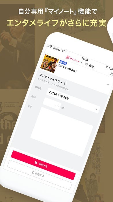 映画やイベントの情報が満載で、新しい文化との出会いをサポートしていた総合エンタメ情報誌「ぴあ」が公式アプリを作りました。「ぴあ」に載っていた濃密なコンテンツはもちろん、NOW&NEWSで最新のエンタメの動向をチェックすることができ、たっぷり楽しめます。あなたも会員登録して作品評を書いたり、お気に入りをマイノートに加えて映画ライフをエンジョイしてみませんか?