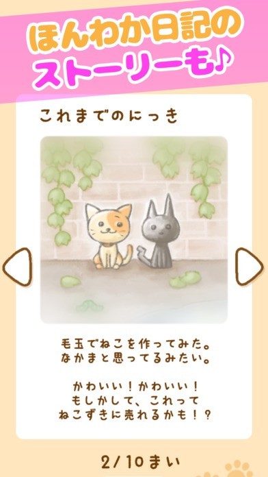 「ねこのけ ?ねこお世話放置ゲーム?」はネコの育成ゲームになります。 かわいい猫をモフモフして、素敵なネコグッズを集めて、幸せな暮らしを堪能できます。 猫を触るとどんどん毛玉が出てきて、それを集めることによってグッズを作ることができるようになります。 グッズの作成でストーリーが進みます。 猫の種類も豊富であり、三毛猫、デブ猫、白猫黒猫、モフモフ系まで色々といますから猫好きの人には迷ってしまうほどです。 自分の気にいる猫がきっと見つかります。